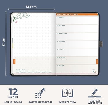 Luxury & practical design: A stylish, lay-flat A5 diary perfect for home or work, combining a planner and notebook in one elegant, easy-to-use format.