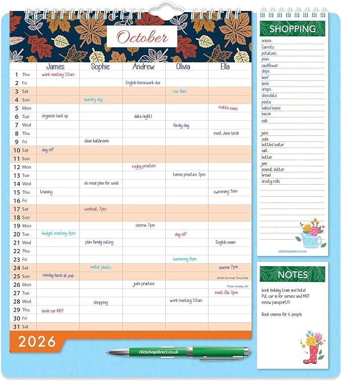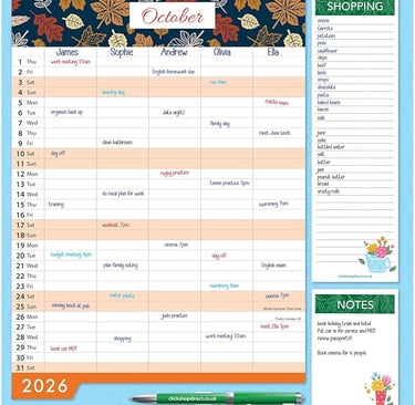 Stay on top of events: Large hanging format provides clear, accessible overview of family commitments and memorable occasions.