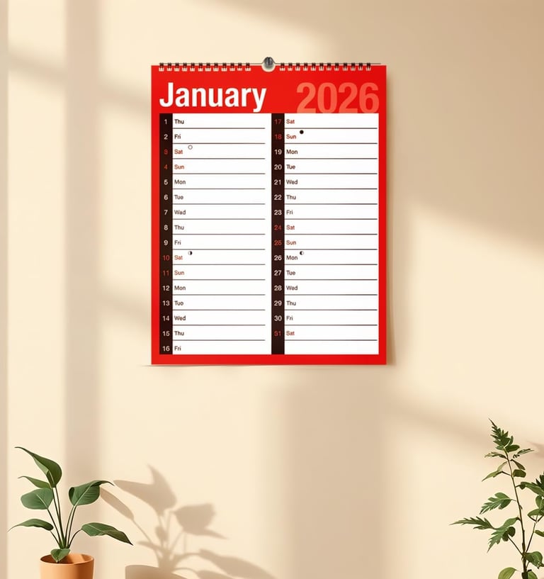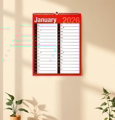 Convenient and durable design: Spiral-bound with hook for wall hanging and easy flipping between months.