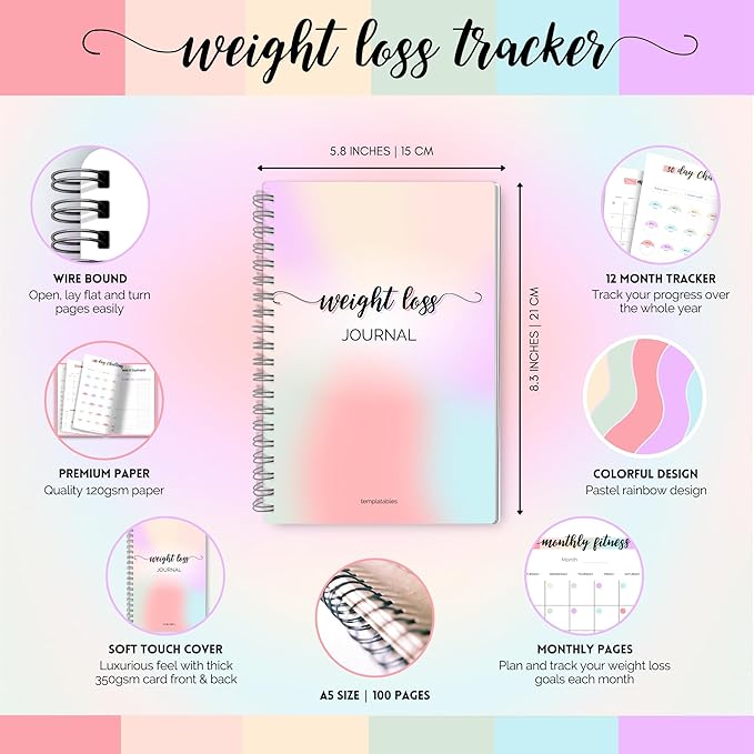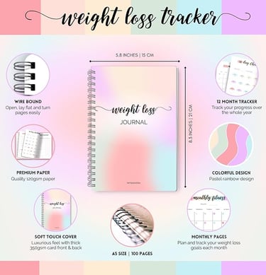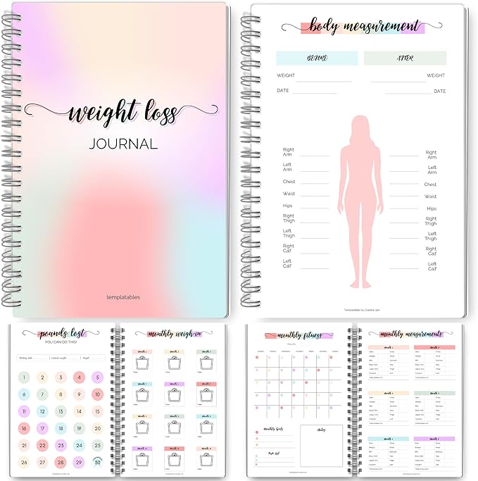 Monthly weight loss journal to track progress, fitness, habits, goals, and motivation