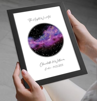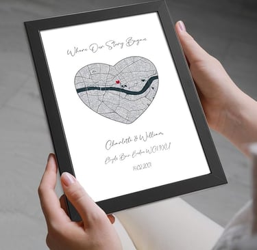 Personalised names in hands, map prints, and sky star prints let couples capture story in a truly meaningful way. They mark where love began, special dates, and shared moments written in the stars. These personalised designs deepen emotional connection, celebrate milestones, and turn memories into beautiful keepsakes that feel intimate, romantic, and completely unique to your relationship.